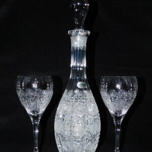 3 teiliges Weinset in Kristallglas, Weinkaraffe mit 2 Rotwein Gläsern, Schliff A